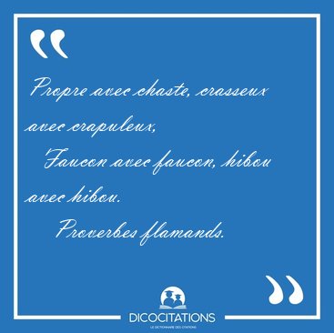 ![Propre avec chaste, crasseux avec crapuleux, Faucon avec [...] - Proverbes flamands... Propre avec chaste, crasseux avec crapuleux, Faucon avec [...] - Proverbes flamands...](/imagescitations/Propre_avec_chaste_crasseux_avec_crapuleux_Faucon_avec_-_Proverbes_flamands-110543.jpg)