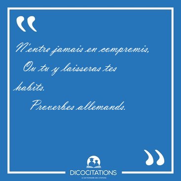 ![N'entre jamais en compromis, Ou tu y laisseras tes [...] - Proverbes allemands... N'entre jamais en compromis, Ou tu y laisseras tes [...] - Proverbes allemands...](/imagescitations/N_entre_jamais_en_compromis_Ou_tu_y_laisseras_tes_-_Proverbes_allemands-110659.jpg)