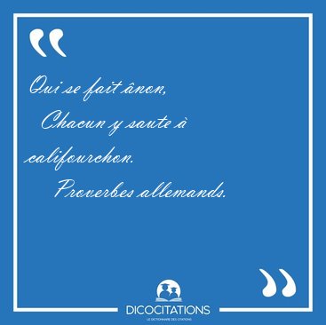![Qui se fait ânon, Chacun y saute à [...] - Proverbes allemands... Qui se fait ânon, Chacun y saute à [...] - Proverbes allemands...](/imagescitations/Qui_se_fait_anon_Chacun_y_saute_a_-_Proverbes_allemands-110681.jpg)