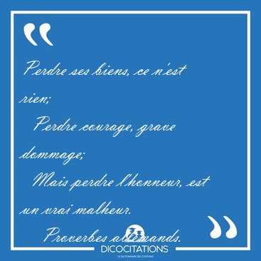 ![Perdre ses biens, ce n'est rien; Perdre courage, grave [...] - Proverbes allemands... Perdre ses biens, ce n'est rien; Perdre courage, grave [...] - Proverbes allemands...](/imagescitations/Perdre_ses_biens_ce_n_est_rien_Perdre_courage_grave_-_Proverbes_allemands-110804.jpg)