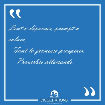 ![Lent à dépenser, prompt à saluer, Font la jeunesse [...] - Proverbes allemands... Lent à dépenser, prompt à saluer, Font la jeunesse [...] - Proverbes allemands...](/imagescitations/Lent_a_depenser_prompt_a_saluer_Font_la_jeunesse_-_Proverbes_allemands-110851.jpg)