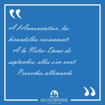 ![A l'Annonciation, les hirondelles reviennent; A la Notre-Dame [...] - Proverbes allemands... A l'Annonciation, les hirondelles reviennent; A la Notre-Dame [...] - Proverbes allemands...](/imagescitations/A_l_Annonciation_les_hirondelles_reviennent_A_la_Notre-Dame_-_Proverbes_allemands-110992.jpg)