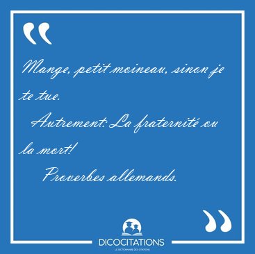 ![Mange, petit moineau, sinon je te tue. Autrement: La [...] - Proverbes allemands... Mange, petit moineau, sinon je te tue. Autrement: La [...] - Proverbes allemands...](/imagescitations/Mange_petit_moineau_sinon_je_te_tue_Autrement_La_-_Proverbes_allemands-111005.jpg)