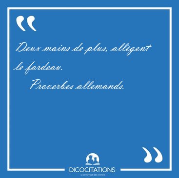 ![Deux mains de plus, allègent le [...] - Proverbes allemands... Deux mains de plus, allègent le [...] - Proverbes allemands...](/imagescitations/Deux_mains_de_plus_allegent_le_-_Proverbes_allemands-111033.jpg)