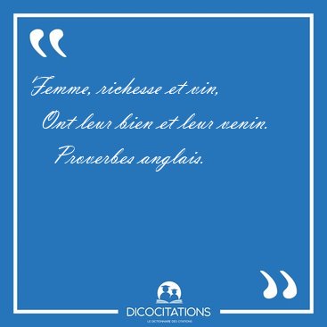 ![Femme, richesse et vin, Ont leur bien et leur [...] - Proverbes anglais... Femme, richesse et vin, Ont leur bien et leur [...] - Proverbes anglais...](/imagescitations/Femme_richesse_et_vin_Ont_leur_bien_et_leur_-_Proverbes_anglais-111484.jpg)
