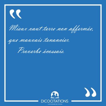 ![Mieux vaut terre non affermée, que mauvais [...] - Proverbe écossais... Mieux vaut terre non affermée, que mauvais [...] - Proverbe écossais...](/imagescitations/Mieux_vaut_terre_non_affermee_que_mauvais_-_Proverbe_ecossais-111521.jpg)
