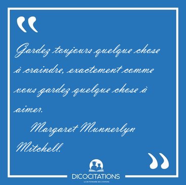 ![Gardez toujours quelque chose à craindre, exactement comme vous [...] - Margaret Munnerlyn Mitchell... Gardez toujours quelque chose à craindre, exactement comme vous [...] - Margaret Munnerlyn Mitchell...](/imagescitations/Gardez_toujours_quelque_chose_a_craindre_exactement_comme_vous_-_Margaret_Munnerlyn_Mitchell-111730.jpg)