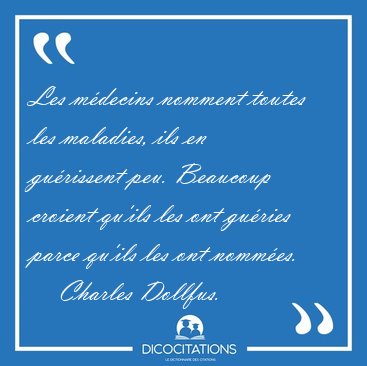 ![Les médecins nomment toutes les maladies, ils en guérissent peu. [...] - Charles Dollfus... Les médecins nomment toutes les maladies, ils en guérissent peu. [...] - Charles Dollfus...](/imagescitations/Les_medecins_nomment_toutes_les_maladies_ils_en_guerissent_peu_-_Charles_Dollfus-112402.jpg)