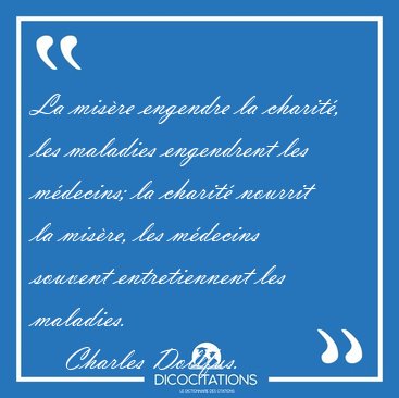 La misère engendre la charité, les maladies engendrent les médecins; la charité nourrit la misère, les médecins souvent entretiennent les maladies.