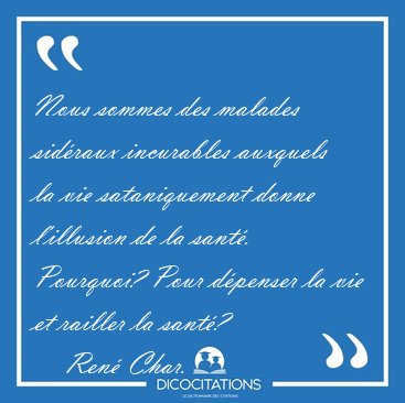 ![Nous sommes des malades sidéraux incurables auxquels la vie [...] - René Char... Nous sommes des malades sidéraux incurables auxquels la vie [...] - René Char...](/imagescitations/Nous_sommes_des_malades_sideraux_incurables_auxquels_la_vie_-_Rene_Char-112529.jpg)
