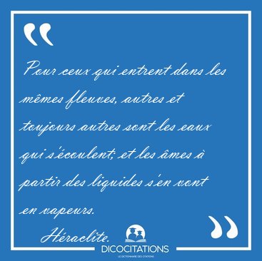 Pour ceux qui entrent dans les mêmes fleuves, autres et toujours autres sont les eaux qui s'écoulent; et les âmes à partir des liquides s'en vont en vapeurs.