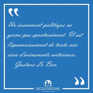 ![Un événement politique ne germe pas spontanément. Il est [...] - Gustave Le Bon... Un événement politique ne germe pas spontanément. Il est [...] - Gustave Le Bon...](/imagescitations/Un_evenement_politique_ne_germe_pas_spontanement_Il_est_-_Gustave_Le_Bon-113264.jpg)