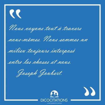 ![Nous voyons tout à travers nous-mêmes. Nous sommes un milieu [...] - Joseph Joubert... Nous voyons tout à travers nous-mêmes. Nous sommes un milieu [...] - Joseph Joubert...](/imagescitations/Nous_voyons_tout_a_travers_nous-memes_Nous_sommes_un_milieu_-_Joseph_Joubert-113305.jpg)
