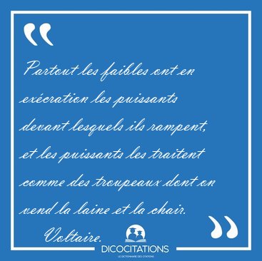 ![Partout les faibles ont en exécration les puissants devant [...] - Voltaire... Partout les faibles ont en exécration les puissants devant [...] - Voltaire...](/imagescitations/Partout_les_faibles_ont_en_execration_les_puissants_devant_-_Voltaire-113538.jpg)