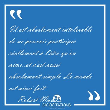 ![Il est absolument intolérable de ne pouvoir participer [...] - Robert Musil... Il est absolument intolérable de ne pouvoir participer [...] - Robert Musil...](/imagescitations/Il_est_absolument_intolerable_de_ne_pouvoir_participer_-_Robert_Musil-114654.jpg)