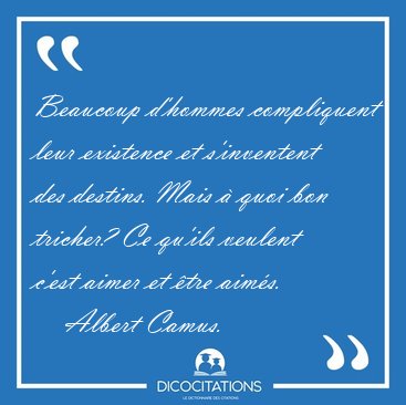 ![Beaucoup d'hommes compliquent leur existence et s'inventent des [...] - Albert Camus... Beaucoup d'hommes compliquent leur existence et s'inventent des [...] - Albert Camus...](/imagescitations/Beaucoup_d_hommes_compliquent_leur_existence_et_s_inventent_des_-_Albert_Camus-114861.jpg)
