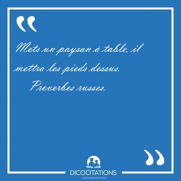 ![Mets un paysan à table, il mettra les pieds [...] - Proverbes russes... Mets un paysan à table, il mettra les pieds [...] - Proverbes russes...](/imagescitations/Mets_un_paysan_a_table_il_mettra_les_pieds_-_Proverbes_russes-114924.jpg)