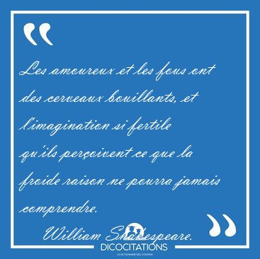 ![Les amoureux et les fous ont des cerveaux bouillants, et [...] - William Shakespeare... Les amoureux et les fous ont des cerveaux bouillants, et [...] - William Shakespeare...](/imagescitations/Les_amoureux_et_les_fous_ont_des_cerveaux_bouillants_et_-_William_Shakespeare-115024.jpg)