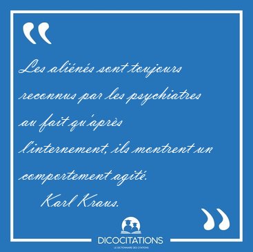 ![Les aliénés sont toujours reconnus par les psychiatres au fait [...] - Karl Kraus... Les aliénés sont toujours reconnus par les psychiatres au fait [...] - Karl Kraus...](/imagescitations/Les_alienes_sont_toujours_reconnus_par_les_psychiatres_au_fait_-_Karl_Kraus-115209.jpg)