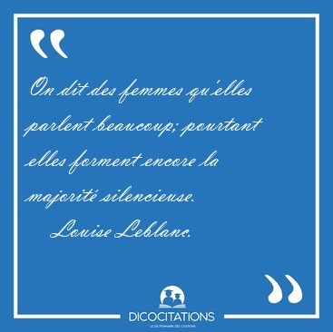 ![On dit des femmes qu'elles parlent beaucoup; pourtant elles [...] - Louise Leblanc... On dit des femmes qu'elles parlent beaucoup; pourtant elles [...] - Louise Leblanc...](/imagescitations/On_dit_des_femmes_qu_elles_parlent_beaucoup_pourtant_elles_-_Louise_Leblanc-115310.jpg)