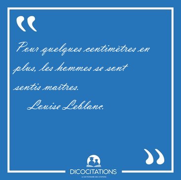 ![Pour quelques centimètres en plus, les hommes se sont sentis [...] - Louise Leblanc... Pour quelques centimètres en plus, les hommes se sont sentis [...] - Louise Leblanc...](/imagescitations/Pour_quelques_centimetres_en_plus_les_hommes_se_sont_sentis_-_Louise_Leblanc-115853.jpg)