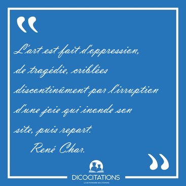 ![L'art est fait d'oppression, de tragédie, criblées [...] - René Char... L'art est fait d'oppression, de tragédie, criblées [...] - René Char...](/imagescitations/L_art_est_fait_d_oppression_de_tragedie_criblees_-_Rene_Char-116188.jpg)