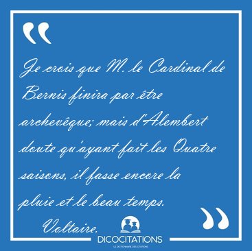 Je crois que M. le Cardinal de Bernis finira par être archevêque; mais d'Alembert doute qu'ayant fait les Quatre saisons, il fasse encore la pluie et le beau temps.