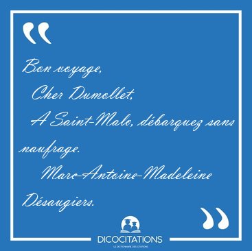 ![Bon voyage, Cher Dumollet, A Saint-Malo, débarquez sans [...] - Marc-Antoine-Madeleine Désaugiers... Bon voyage, Cher Dumollet, A Saint-Malo, débarquez sans [...] - Marc-Antoine-Madeleine Désaugiers...](/imagescitations/Bon_voyage_Cher_Dumollet_A_Saint-Malo_debarquez_sans_-_Marc-Antoine-Madeleine_Desaugiers-116563.jpg)
