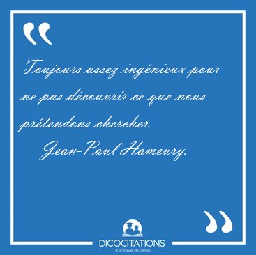 ![Toujours assez ingénieux pour ne pas découvrir ce que nous [...] - Jean-Paul Hameury... Toujours assez ingénieux pour ne pas découvrir ce que nous [...] - Jean-Paul Hameury...](/imagescitations/Toujours_assez_ingenieux_pour_ne_pas_decouvrir_ce_que_nous_-_Jean-Paul_Hameury-117202.jpg)