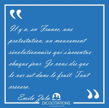Il y a, en France, une protestation, un mouvement révolutionnaire qui s'accentue chaque jour. Je vous dis que le ver est dans le fruit. Tout crèvera.