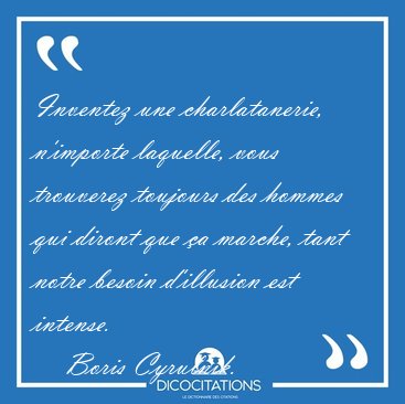 Inventez une charlatanerie, n'importe laquelle, vous trouverez toujours des hommes qui diront que ça marche, tant notre besoin d'illusion est intense.
