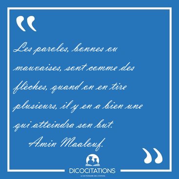 ![Les paroles, bonnes ou mauvaises, sont comme des flèches, quand [...] - Amin Maalouf... Les paroles, bonnes ou mauvaises, sont comme des flèches, quand [...] - Amin Maalouf...](/imagescitations/Les_paroles_bonnes_ou_mauvaises_sont_comme_des_fleches_quand_-_Amin_Maalouf-118337.jpg)