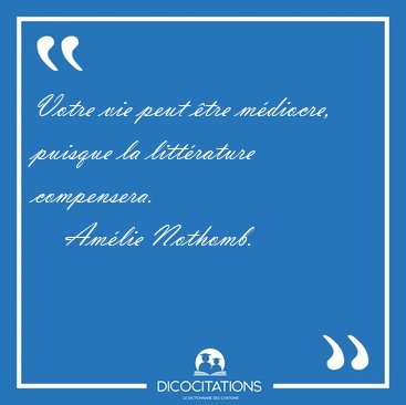 ![Votre vie peut être médiocre, puisque la littérature [...] - Amélie Nothomb... Votre vie peut être médiocre, puisque la littérature [...] - Amélie Nothomb...](/imagescitations/Votre_vie_peut_etre_mediocre_puisque_la_litterature_-_Amelie_Nothomb-118510.jpg)