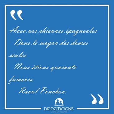 ![Avec nos chiennes épagneules Dans le wagon des dames seules [...] - Raoul Ponchon... Avec nos chiennes épagneules Dans le wagon des dames seules [...] - Raoul Ponchon...](/imagescitations/Avec_nos_chiennes_epagneules_Dans_le_wagon_des_dames_seules_-_Raoul_Ponchon-118889.jpg)