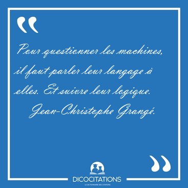 ![Pour questionner les machines, il faut parler leur langage à [...] - Jean-Christophe Grangé... Pour questionner les machines, il faut parler leur langage à [...] - Jean-Christophe Grangé...](/imagescitations/Pour_questionner_les_machines_il_faut_parler_leur_langage_a_-_Jean-Christophe_Grange-119123.jpg)