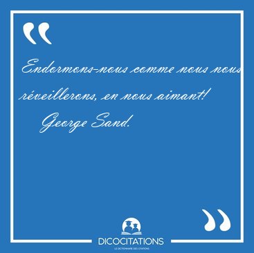 ![Endormons-nous comme nous nous réveillerons, en nous [...] - George Sand... Endormons-nous comme nous nous réveillerons, en nous [...] - George Sand...](/imagescitations/Endormons-nous_comme_nous_nous_reveillerons_en_nous_-_George_Sand-119275.jpg)