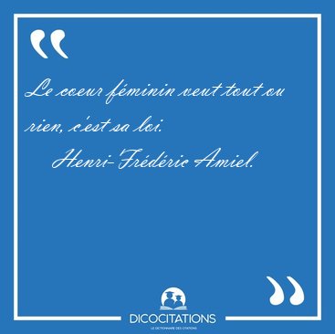 ![Le coeur féminin veut tout ou rien, c'est sa [...] - Henri-Frédéric Amiel... Le coeur féminin veut tout ou rien, c'est sa [...] - Henri-Frédéric Amiel...](/imagescitations/Le_coeur_feminin_veut_tout_ou_rien_c_est_sa_-_Henri-Frederic_Amiel-119546.jpg)