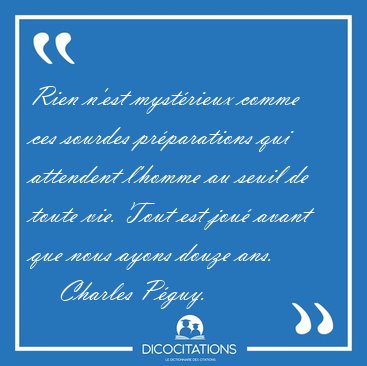 Rien n'est mystérieux comme ces sourdes préparations qui attendent l'homme au seuil de toute vie. Tout est joué avant que nous ayons douze ans.