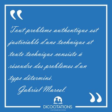 Tout problème authentique est justiciable d'une technique et toute technique consiste à résoudre des problèmes d'un type déterminé.