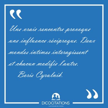 ![Une vraie rencontre provoque une influence réciproque. Deux [...] - Boris Cyrulnik... Une vraie rencontre provoque une influence réciproque. Deux [...] - Boris Cyrulnik...](/imagescitations/Une_vraie_rencontre_provoque_une_influence_reciproque_Deux_-_Boris_Cyrulnik-121041.jpg)