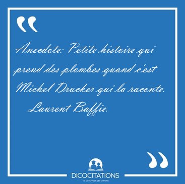 ![Anecdote: Petite histoire qui prend des plombes quand c'est [...] - Laurent Baffie... Anecdote: Petite histoire qui prend des plombes quand c'est [...] - Laurent Baffie...](/imagescitations/Anecdote_Petite_histoire_qui_prend_des_plombes_quand_c_est_-_Laurent_Baffie-121241.jpg)