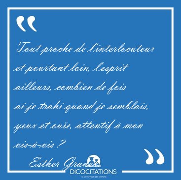 ![Tout proche de l'interlocuteur et pourtant loin, l'esprit [...] - Esther Granek... Tout proche de l'interlocuteur et pourtant loin, l'esprit [...] - Esther Granek...](/imagescitations/Tout_proche_de_l_interlocuteur_et_pourtant_loin_l_esprit_-_Esther_Granek-122405.jpg)