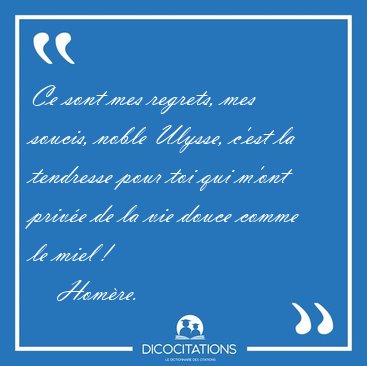 ![Ce sont mes regrets, mes soucis, noble Ulysse, c'est la [...] - Homère... Ce sont mes regrets, mes soucis, noble Ulysse, c'est la [...] - Homère...](/imagescitations/Ce_sont_mes_regrets_mes_soucis_noble_Ulysse_c_est_la_-_Homere-123220.jpg)