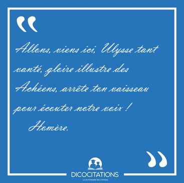 Allons, viens ici, Ulysse tant vanté, gloire illustre des Achéens, arrête ton vaisseau pour écouter notre voix !