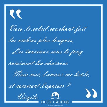 ![Vois, le soleil couchant fait les ombres plus longues, Les [...] - Virgile... Vois, le soleil couchant fait les ombres plus longues, Les [...] - Virgile...](/imagescitations/Vois_le_soleil_couchant_fait_les_ombres_plus_longues_Les_-_Virgile-123606.jpg)