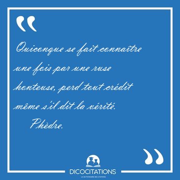 Quiconque se fait connaître une fois par une ruse honteuse, perd tout crédit même s'il dit la vérité.