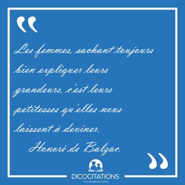 ![Les femmes, sachant toujours bien expliquer leurs grandeurs, [...] - Honoré de Balzac... Les femmes, sachant toujours bien expliquer leurs grandeurs, [...] - Honoré de Balzac...](/imagescitations/Les_femmes_sachant_toujours_bien_expliquer_leurs_grandeurs_-_Honore_de_Balzac-123964.jpg)