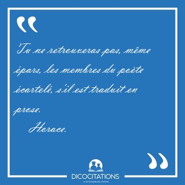 Tu ne retrouveras pas, même épars, les membres du poète écartelé, s'il est traduit en prose.