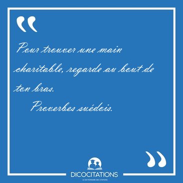 ![Pour trouver une main charitable, regarde au bout de ton [...] - Proverbes suédois... Pour trouver une main charitable, regarde au bout de ton [...] - Proverbes suédois...](/imagescitations/Pour_trouver_une_main_charitable_regarde_au_bout_de_ton_-_Proverbes_suedois-124225.jpg)