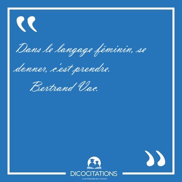 ![Dans le langage féminin, se donner, c'est [...] - Bertrand Vac... Dans le langage féminin, se donner, c'est [...] - Bertrand Vac...](/imagescitations/Dans_le_langage_feminin_se_donner_c_est_-_Bertrand_Vac-124508.jpg)